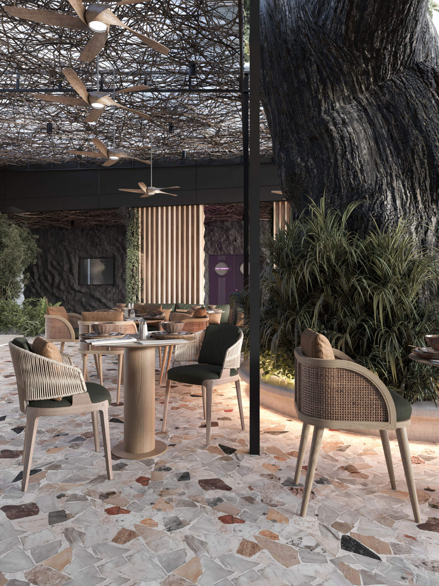 We aspire to capture the island's vibrant spirit in every detail. Our fire-grilled cuisine gains its character from the open flame, echoing the dynamic nature of lava. The warmth and movement of Bali's spirit are present in our dishes, cocktails, interior design, and the heartfelt service from our waiters.
